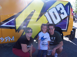 ~Sydney with Brad and Tara from a local radio station. These guys are awesome. They promoted the walk and helped spread the word. They put syd's video up on the radio webpage and I got many texts from friends who heard them talking about sydney during their morning show. They are amazing and we love their support! By the way, Sydney has a crush on Brad. It is pretty cute.